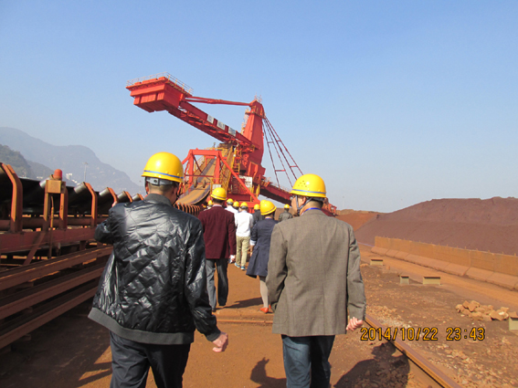 24日上午参会嘉宾首先到新苏港公司使用现场参观,新苏港公司王队长及现场人员对我公司的装车机、移动式皮带秤在长达一年使用过程中的使用情况及所发挥的作用作了详细的介绍,对该产品的精度给予了高度的评价;同时连云港港口局希望利用他们的平台把我公司的产品做一个高新产品项目。