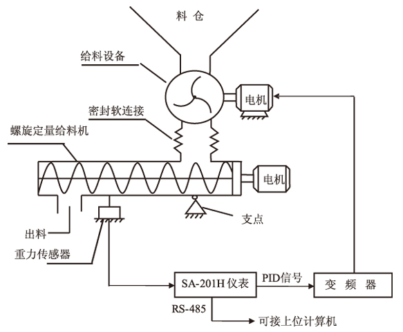 减量秤仪表,根据减重速率调整出料螺旋机转速,当称量计重量小于秤量下限时,固定出料螺旋转速启动快速装料设备,装料到称重上限时停止装料。